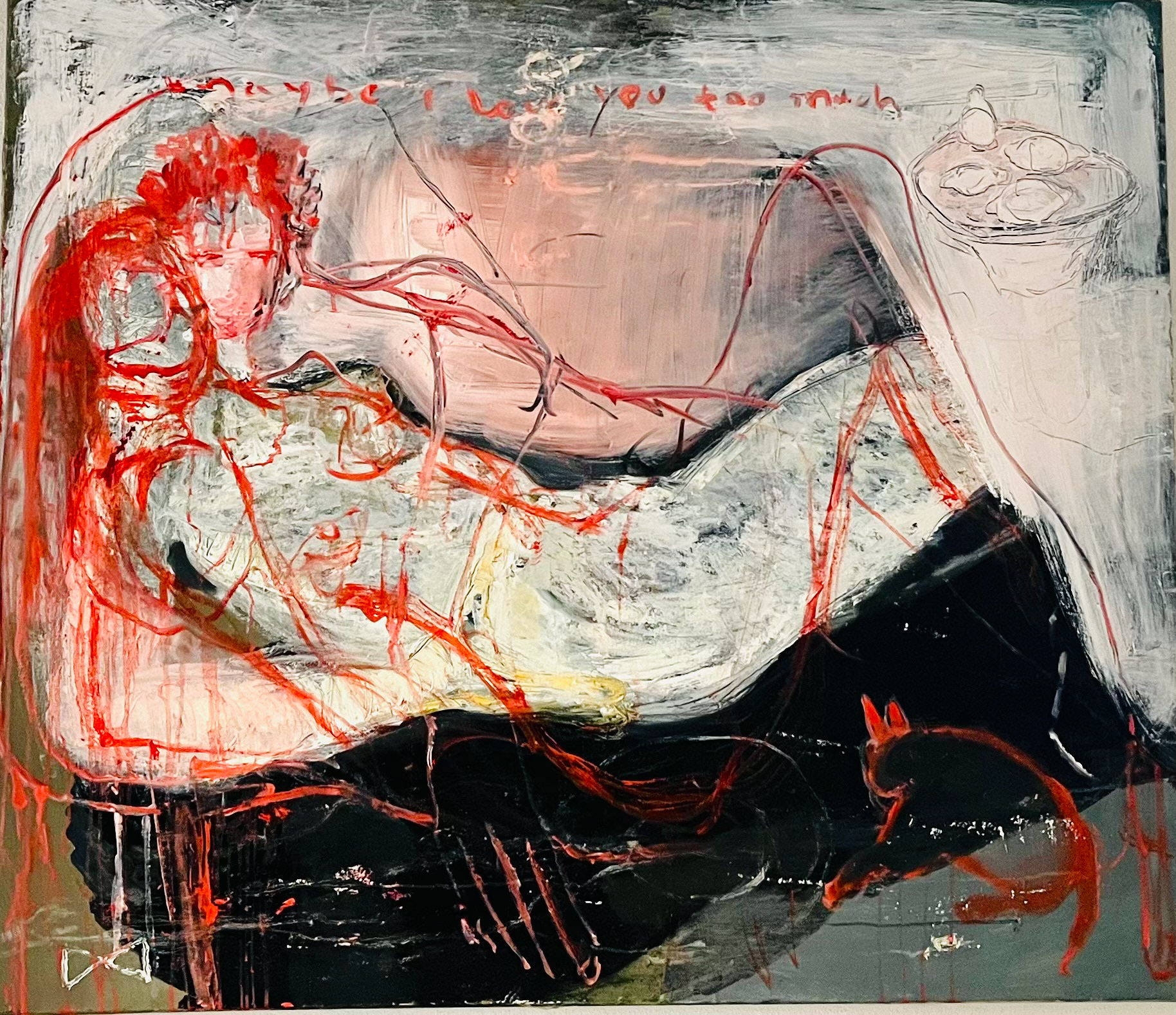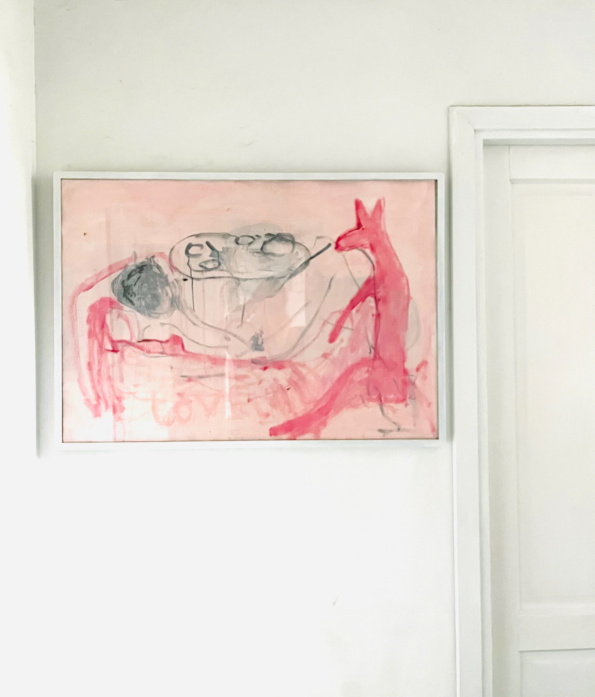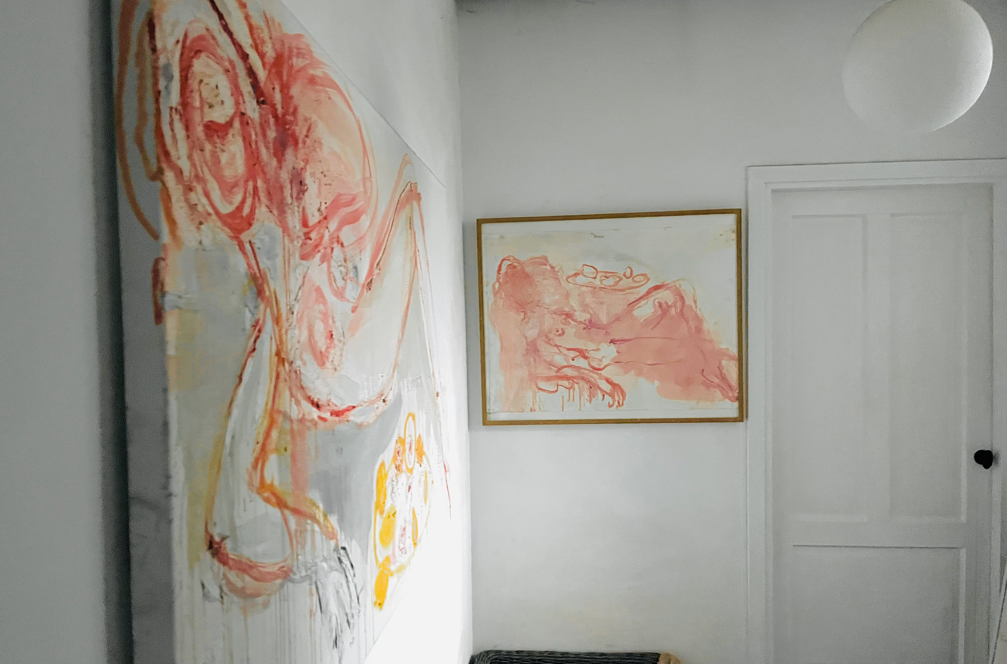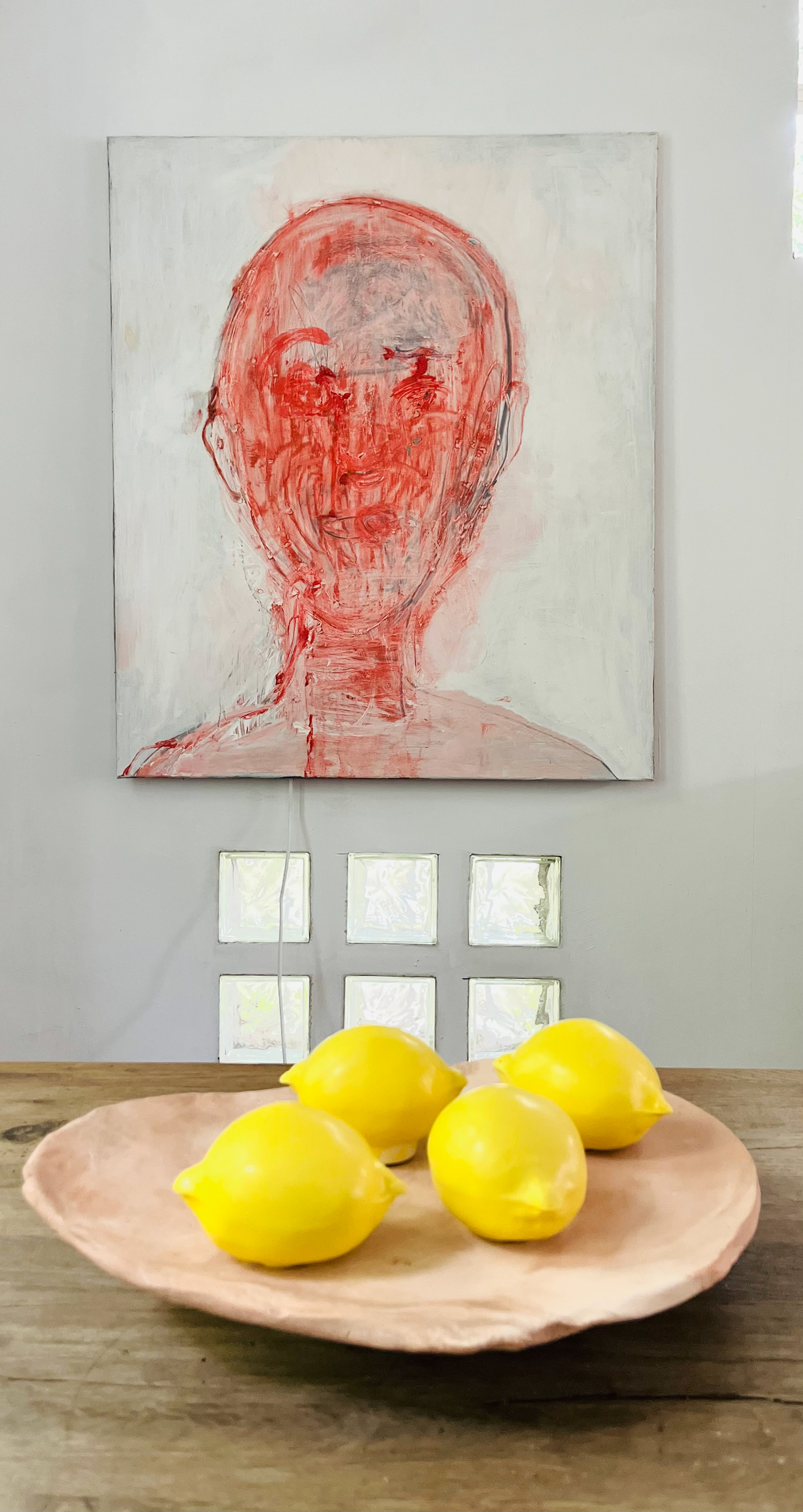 The rosegarden featuring a new series of works on paper and oilpantings in the symbolic color red. Red lines form an intimate, protected space within the compositions.The presence of a divers female body of work in relation to a stillife. Lemons formed a familycircle. These lemons are also made in clay, named the Kunstcitroen ceramics. The intimacy of the human body manifesting an own domestic setting. This remains us of home and the struggle&love for life. The red in my work does not merely symbolize blood instead, it evokes life, growth, emotion and connection, shaping a visual space where vulnerability and nature coexist.